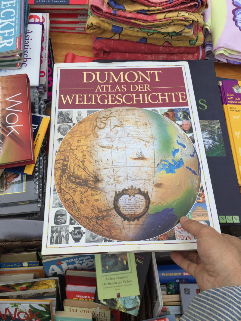 제가 어느 일요일에 혼자 시간을 때우기 위해 근처 벼룩시장을 서성이다, 아주 두껍고 엄청난 세계사 지도책을 단돈 700원에 구매했습니다. 독일 돈으로 50센트였습니다.