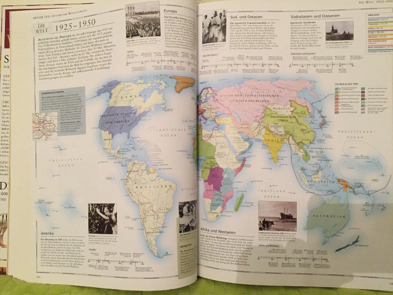 독일어로 된 역사 지리책이기 때문에 전 세계 역사를 총망라하고 있습니다. 2000년에 출판된 책임에도 불구하고 한국의 역사 소개는 찾아볼 수 없습니다.